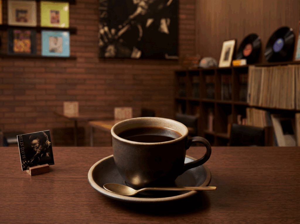 店内には、長い歴史の中で集められたジャズの名盤をはじめ、こだわりのレコード3000枚以上、CD約1000枚、そして、ジャズの情報誌スイングジャーナルが廃刊号まですべてが、置かれています。 ジャズの歴史がつまった空間、淹れたてのコーヒーを楽しみながら、ジャズを楽しんで下さい。