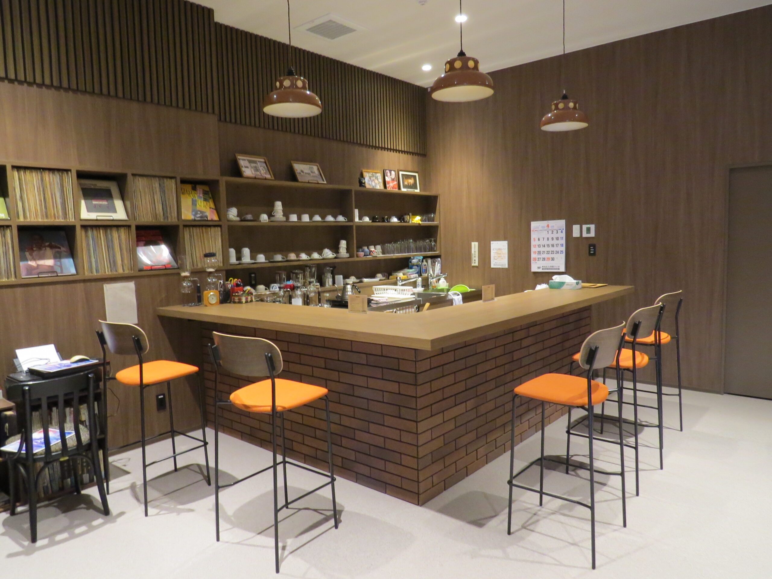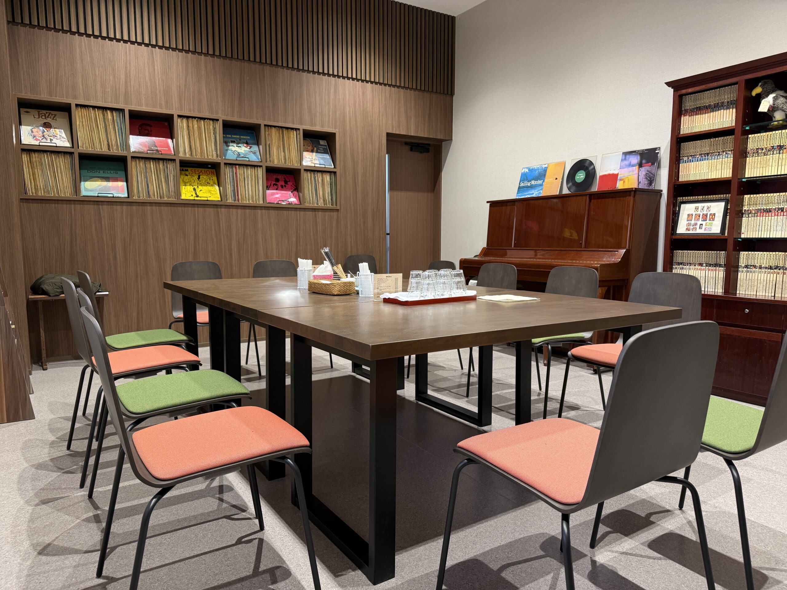 前店舗同様、打ち合わせや会議もできるお部屋が、広めのスペース、冷房もばっちりの空間として、準備されています。部屋のなかには、前店舗でプロのミュージシャンも演奏したアップライトピアノも置かれています。